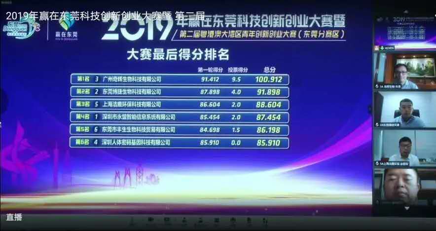 5月15日,由东莞市科学技术局、市教育局、市人力资源和社会保障局、市妇联、共青团东莞市委员会、市人民政府驻北京联络处及广东省科学院共同主办的2019赢在东莞科技创新创业大赛暨第二届粤港澳大湾区青年创新创业大赛(东莞分赛区)生命科学和生物技术行业决赛圆满结束。