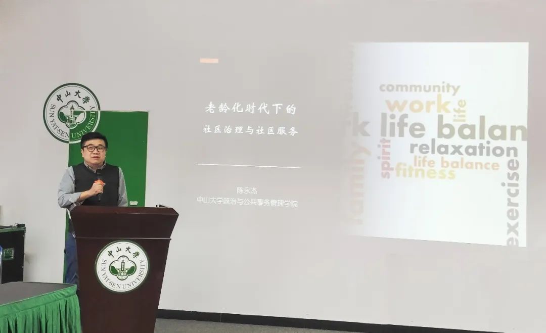 论坛中,政务学院陈永杰教授发表题为《人口老龄化——珠三角社区服务及治理》的主旨演讲,探讨老龄化时代下珠三角地区如何加强社区政务服务、优化政务环境及养老服务的重要性。