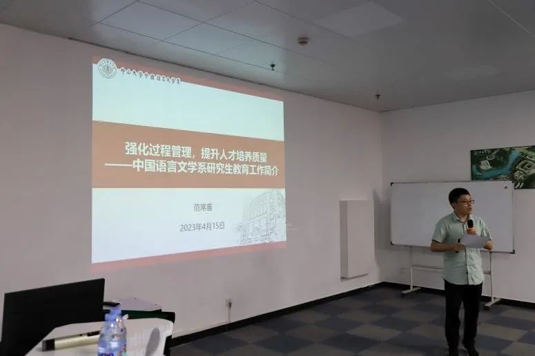 中文系副主任张均、副主任范常喜、党委副书记谢金华分别作本科人才培养专题报告、研究生人才培养专题报告、学生工作专题报告。